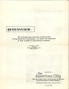 In 1952, Louis Pink, Queensview’s first President and founder —and her most vocal and visible champion— wrote this article to appear in “The American City” magazine.